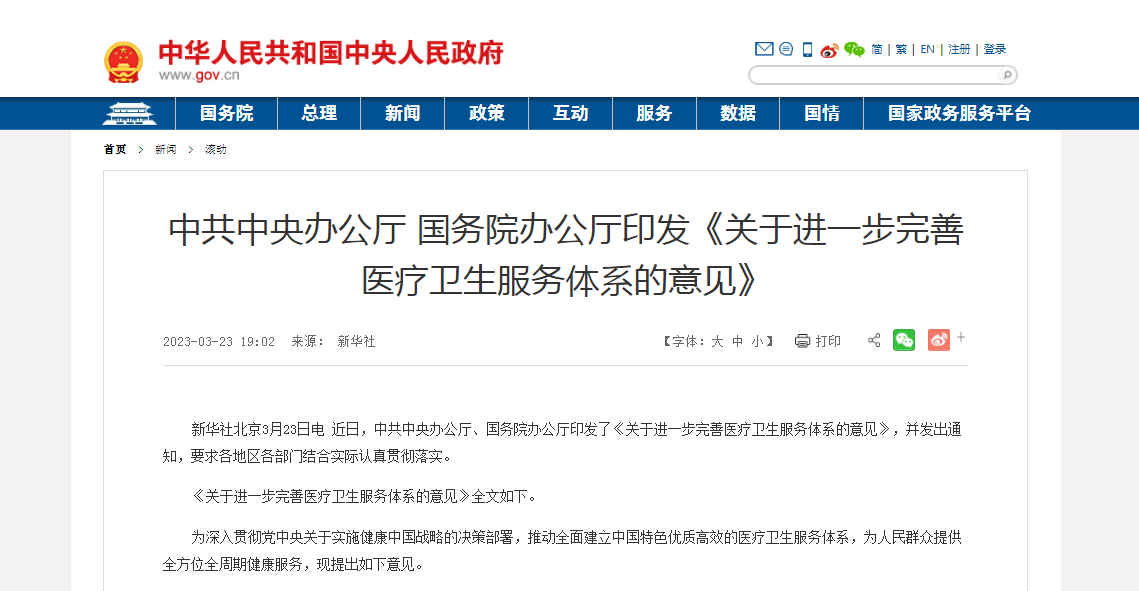 原文鏈接:中共中央辦公廳 國(guó)務(wù)院辦公廳印發(fā)《關(guān)于進(jìn)一步完善醫(yī)療衛(wèi)生服務(wù)體系的意見(jiàn)》