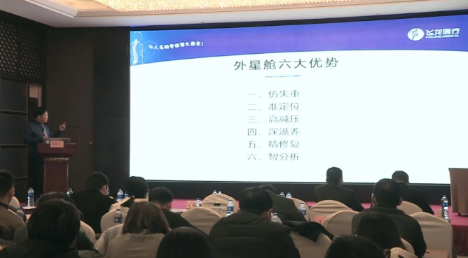 白求恩精神研究會(huì)康復(fù)醫(yī)學(xué)分會(huì)秘書長(zhǎng)、鄭州飛龍醫(yī)療設(shè)備有限公司董事長(zhǎng)張新民在會(huì)上介紹了該公司專利產(chǎn)品外星艙非手術(shù)脊柱減壓系統(tǒng),得到與會(huì)專家學(xué)者的一致好評(píng)。