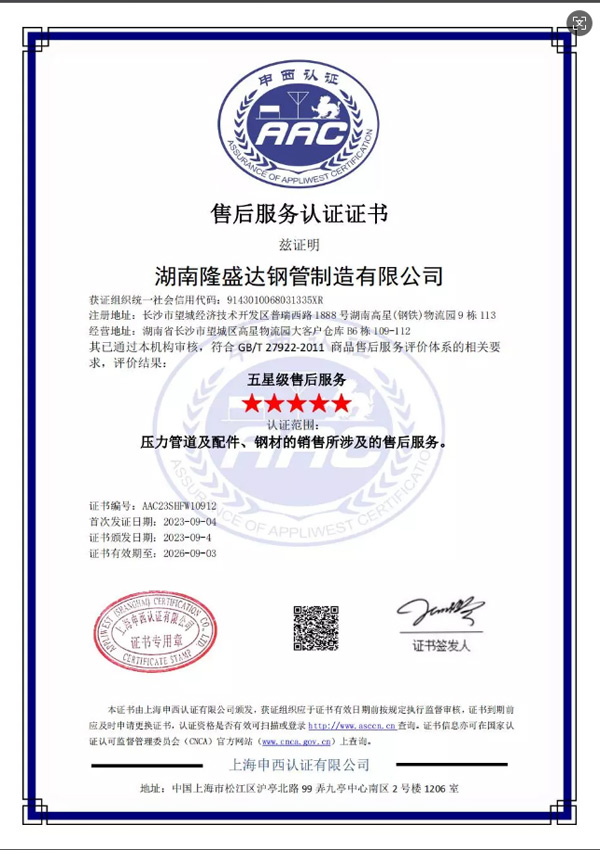 • 五星售后認(rèn)證—湖南隆盛達(dá)